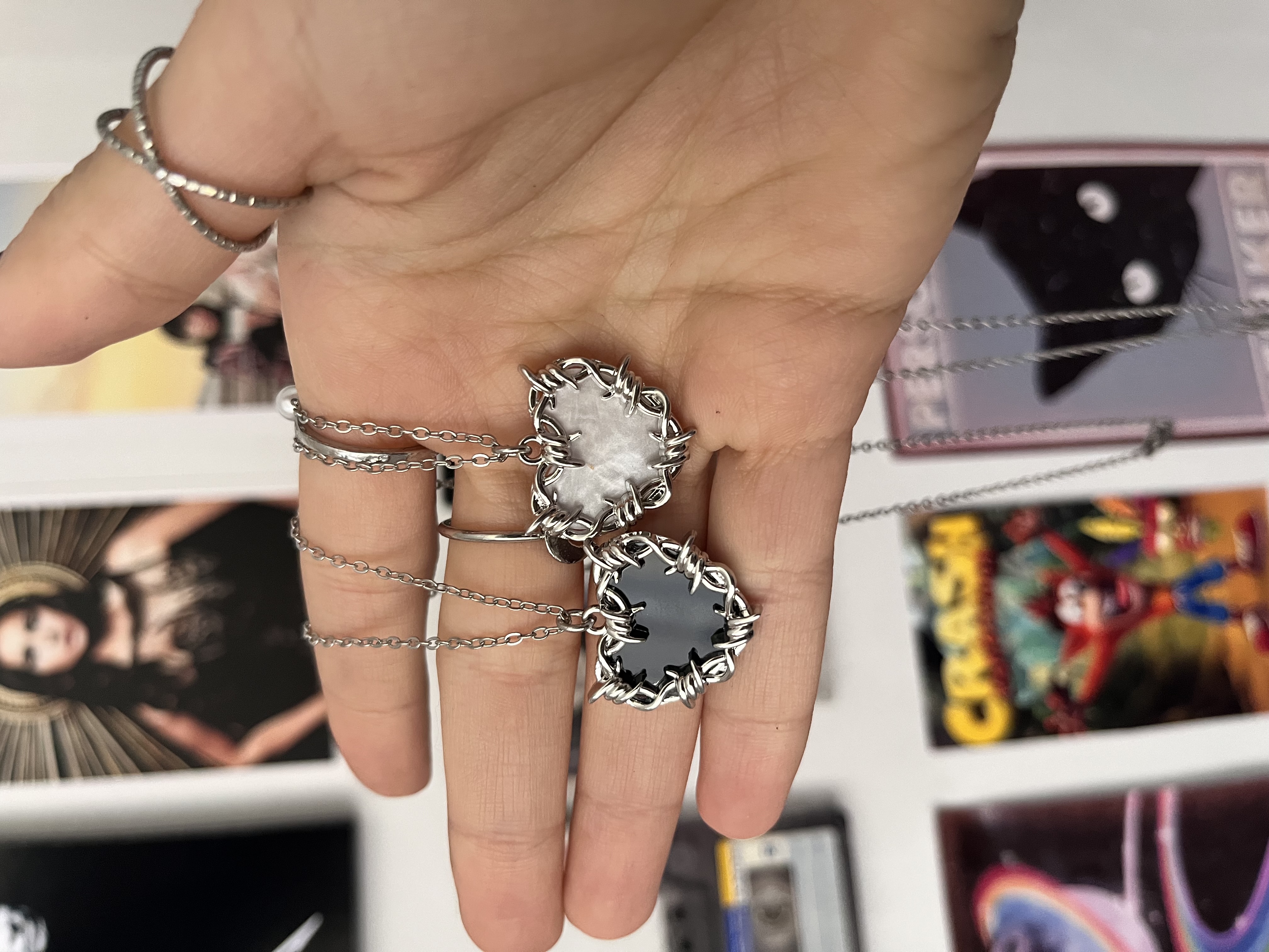 ᯓ★ست گردنبند قلب سیاه سفید🤍✨🖤⟢